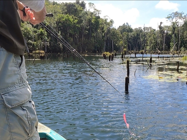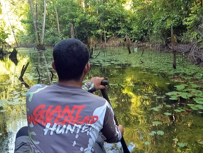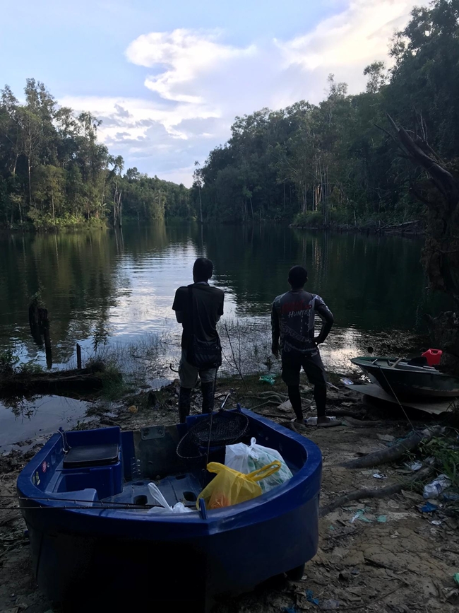 エンジンで進めなくなると、Awangが漕いで一番奥まで進みます。