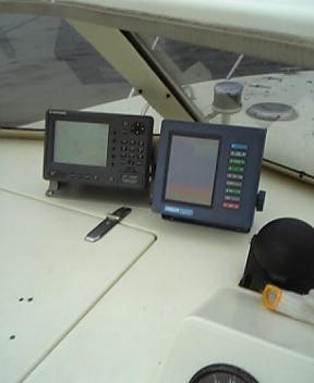 左が古野GP1640F、白黒GPSプロッター魚探50K200Kの2周波で出力は600Wです。