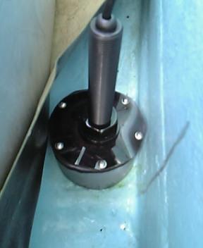 トランスデューサーの周りの白いものは船底とツライチになるように木片を取り付けました。