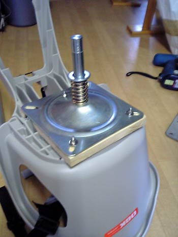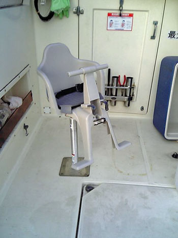 ![]() | 椅子は自転車用を流用。底は段差があったので加工した板を椅子とマウントの間に挟んでいます。 |