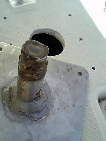 ![]() | ボートと艤装品の間にはシリコンを塗って防水処理をします。はみ出した分は拭き取りますが、シリコンは完全に拭き取れず、浸透してしまうため、後々黒くなり目立つ事になります。面倒でもマスキングテープを貼って処理すれば、キレイに仕上がります。ちなみにデッキの裏側には板をあててあります。 |
