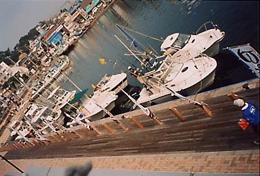 するとメータークラスのシイラがホントに来たではありませんか。すかさずHWCさんと僕がルアーを投げます。やはり見切られているのかルアーを追ってはくるのですが食いません。食え食えなどとやっていたら、あろう事かハラグチさんのサバに食っちゃいました。食った瞬間にドラグが鳴り0.5秒後にあっさり切れました。どっちみちルアーで釣るのが条件なのでマズかったですけど興奮させてもらいました。