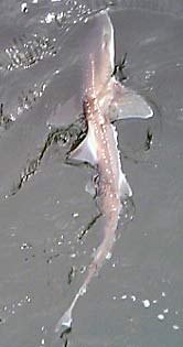 しか〜し、水面に姿を現したのはマゴチじゃありません。サメじゃぁないですか。それもいいサイズだし。もーがっかりです。写真を撮った後、針を外そうと思いましたが、口の奥の方に刺さっているようなので糸を切りました。