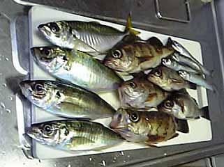 沖ノ根はすぐに諦めて中ノ瀬に向かいます。遊漁船が何艇かいますが、シロギス狙いっぽい感じです。魚探を見ながら走り回りますがコレと言った反応がありません。前に良い思いをした事のあるブイ際を攻めてみます。潮のあたっている側でショットガンをすると一発で魚がノリました。あげてみると、まぁまぁサイズのメバルです。オカズに十分な大きさなのでキープして再び仕掛けを落とすと今度はアジ。たぶん今シーズン初アジです。今年、八景沖にはあまりアジがまわって来ていないようなので、なかなかお目にかかれませんでした。気を良くして何度も攻めます。ブイ際狙いのショットガンをやっていて感じたのが、ピンポイントでブイの真正面にサビキが落ちた時だけ魚がかかるという事で、しかも釣れる範囲がものすごく狭い感じでした。一人で操船しながら釣りをしていると、すぐにポイントを外れてしまい、もどかしい思いをしました。