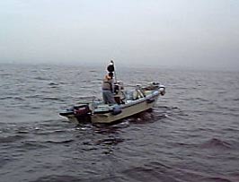 ということでボートを出したのは8時半頃。準備OK、さて出港って時から雨が降り出しました。カッパは持ってこなかったのでウインドブレーカーで我慢します。雨に濡れながら中ノ瀬へ向かいます。到着すると遊漁船はおらずプレジャー3艇のみ。とりあえず最近好きなブイ超際でショットガン。2発目でキワにドンピシャで落ちました。上げてみると、まぁまぁサイズのメバル4匹です。
