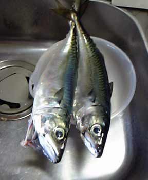 何度かキャストしますがアタリません。鳥山が離れたので追っかけて再びキャスト。水面直下を高速で巻いて来ます。するとボシュ!ボシュ!という感じで魚がアタックしてきました。目で見えると興奮度急上昇!1人なのに『あぁ〜』「ちゃんと喰え!」などと独り言が出て来ます。次のキャストもアタックされますがフッキングしません。その後何投目かに魚がフッキングしました。上げてみるとサバです。すごく太っていて僕の腕より太い感じ。