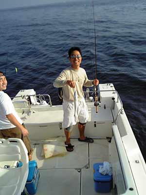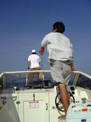 今日は早朝からボートを出し、ハラグチさんとミケンさんとシイラを狙いに行きました。