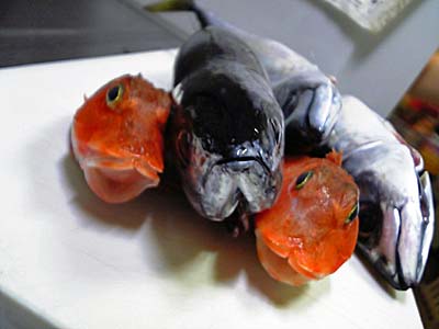 釣れたのは仕掛け回収時に上の方で掛かったサバとソーダ、あとは下まで落とした時に掛かったホウボウだけ。