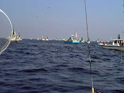 まずは1の対策で6時にボートを出して7時頃には剣崎へ着く事が出来ました。ポイントは前回と同じで、すでに船団が出来ています。