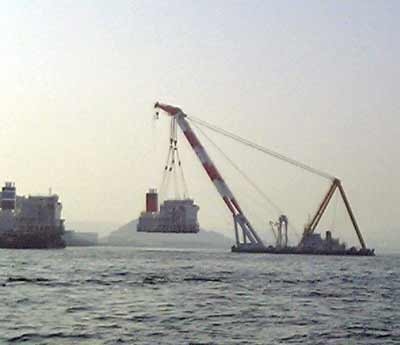 吊るされているのは本船のブリッジのようです。