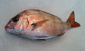 が、それからは後が続きません。誘い方を色々と変えてみますがダメです。置竿はもちろんダメ。もうやめようかなぁと思った頃に何か魚が掛かりました。あげてくると明らかにシロギスとは違う引きをしているし、パワーがあります。水面に浮かんで来たのは赤い魚。ウミタナゴ?一応タモを使って無事キャッチ。よく見てみるとマダイではないですか。初マダイキャッチです。こんな所にもいるもんですね。しかも食ったのはワームだし。サイズが小さいのでリリースするか散々悩みましたが、針の掛かった場所も悪かったし、初めてのマダイという事で、ありがたくキープさせてもらいました。