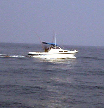 海友と同型艇を発見!トローリングをしていました。ドライブ船のようです。