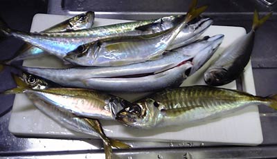 サバはいつも内蔵を出してきます。カモメが争って食べていました。