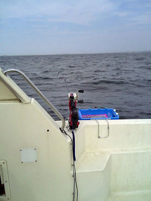 今日の狙いはアジ。ポイントは赤灯の沖。水深は30m付近。