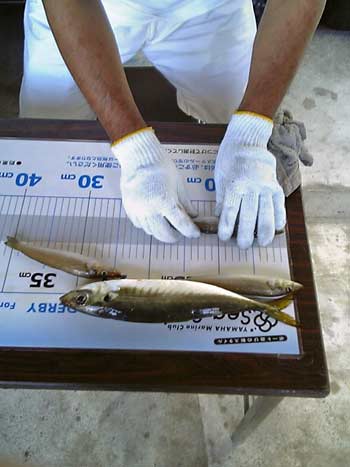 途中、YBM沖では珍しいサイズのアジが釣れてビックリ!