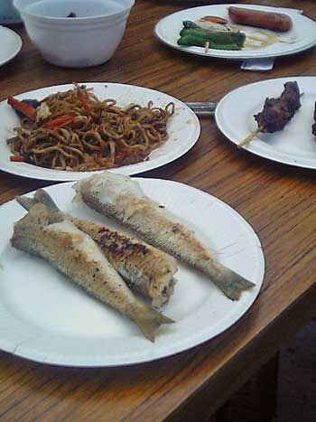 上がった後は、電車でDマリまで魚を持ち込んで表彰式&BBQ。汗ダラダラで焼きソバを作ったりしました。