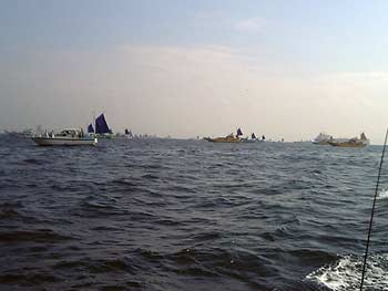 観音崎沖のタチウオ船団