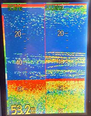 40m付近に映っている反応がソレっぽいのですが・・・