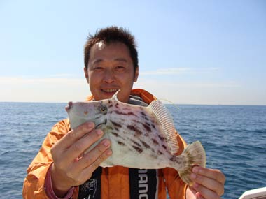 O谷さんが釣ったジャンボカワハギ!今日がハギマスターでも良い成績だったと思います