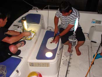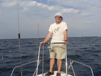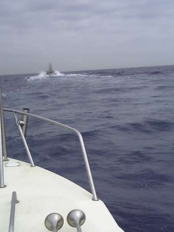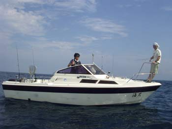 途中漁船にくっ付き、コバンザメ航行。おかげでアクビが出る程のラクチン気分でした。