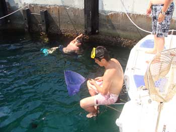 船底の貝を落としたり、水遊びです。