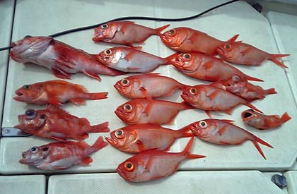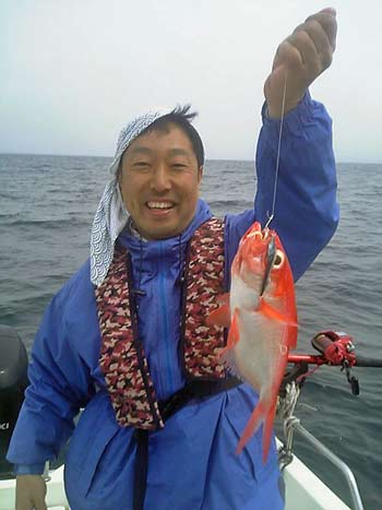 水深は350m位。オモリ150号、5本針のライトタックルです。
