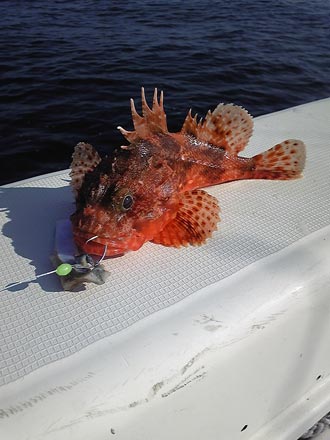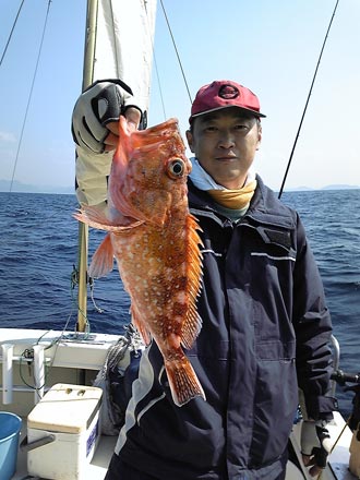 同行のO谷さんが、深めのポイントでユメカサゴ少々、剣崎沖で良型のウッカリカサゴ、久里浜沖でムギイカをゲット。
