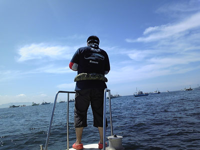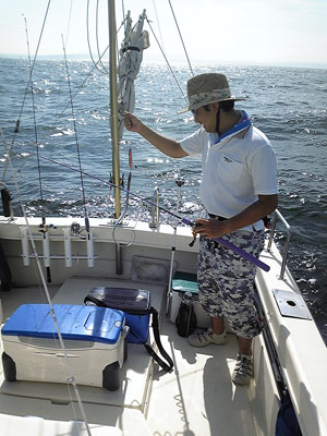 そのうち遊漁船が固まり出したので近くで流し、終日ポツポツ釣れ続けました。