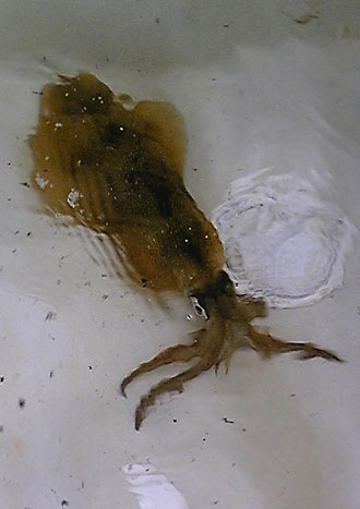 スミイカを狙って中オモリのエギをしゃくっているとズシッ。