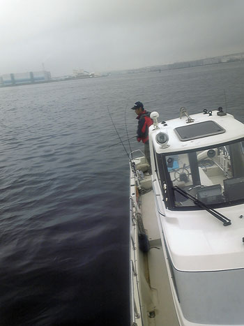 横浜港内の釣りなので、友人のO谷艇に乗せてもらいました。