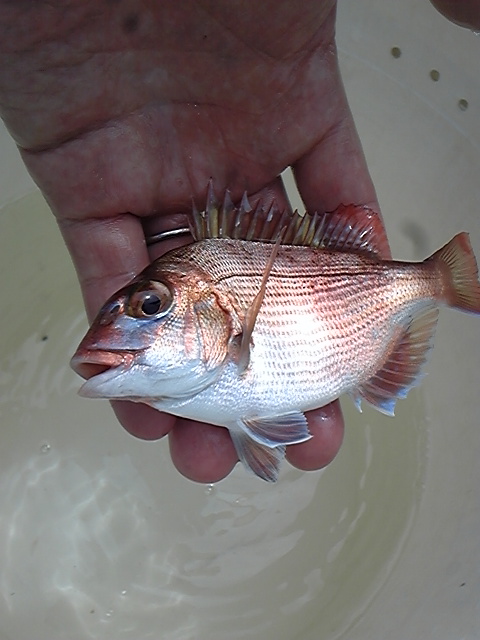 ポイントを大きく移動して反応を流し投入すると、恐ろしく小さい真鯛の一荷。