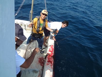 タモの柄が折れてしまったけど、ギャフ打ち成功。