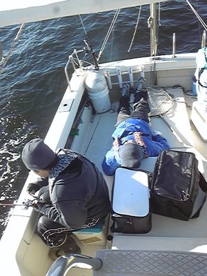 若手?チーム。今回の釣行の言い出しっぺは寝ています。