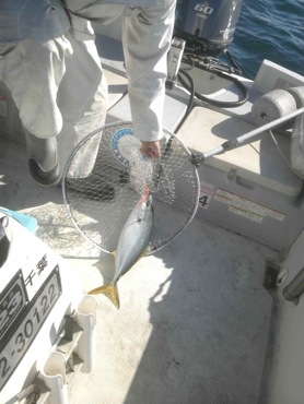 H口さんが、外道でイナワラをゲット。写真だと小さく見える感じ。