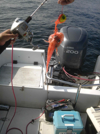 同行のH口さんは、ジグではなく、深海タイラバを使い倒しましたが、ユメカサゴと、潮の流れに苦戦して入った浅場(100m)でウッカリカサゴをゲット。