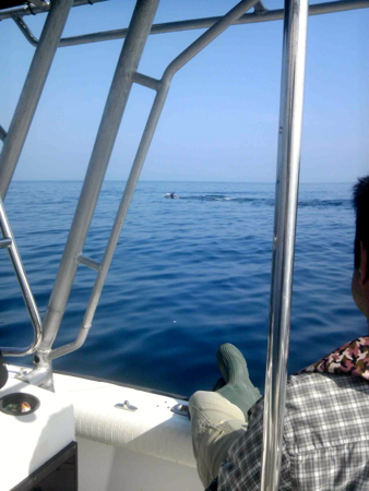 それはそうと、今回の釣行では、ポイント移動中に海面の変化を見つけ、ナブラだと思って近づいたらイルカ発見のサプライズがありました。