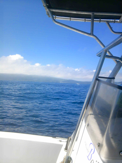 風が弱くクルージング日和で、あっというまに岡田港前。