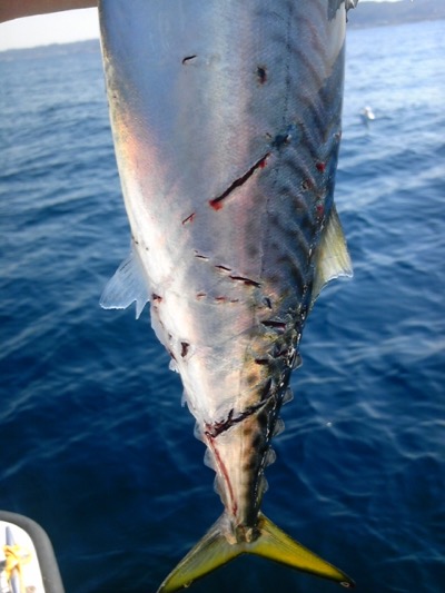 掛かったサバが何かに攻撃されました。