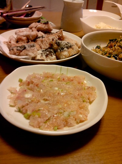 スミヤキのなめろうと、少しだけキープしたサバの竜田揚げ