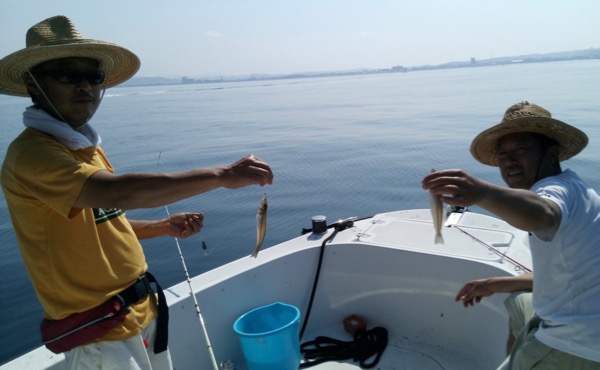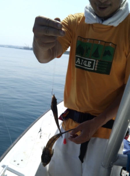 面白かったのはO谷さんが、メゴチを泳がせてハモノ狙いをしていましたが、竿がガクガクして上げてみたら、なぜか孫針に別にメゴチが・・・