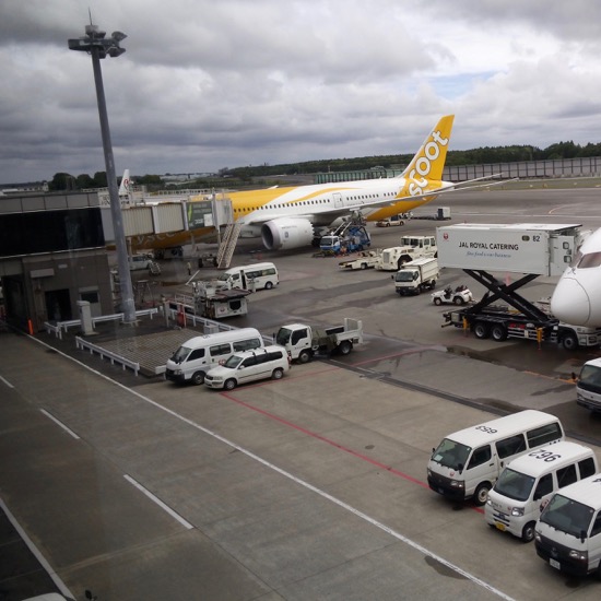 飛行機はLCCのスクートで成田を10時発、ドンムアン空港へ15時着。時差が2時間あるので7時間です。