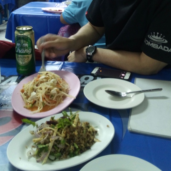 夕食は観光客がなかなか訪れなさそうなローカル食堂へ。お会計は244バーツ(約850円)でした。