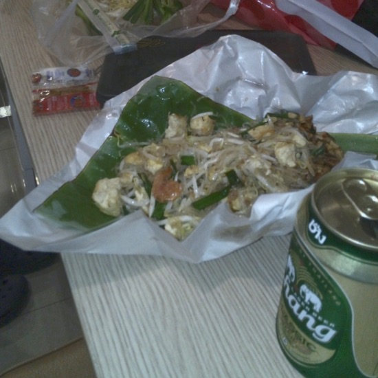 店を出てから夜食用に屋台でパッタイ2人前80バーツ(約280円)を買って帰りました。