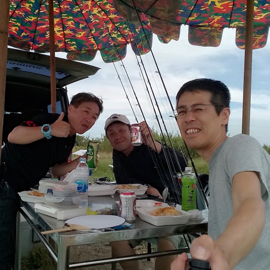 僕は自作ルアーでも釣ったし、トップでも釣ったし、満足したのと暑さにやられて休憩時間が長かったですが、同級生NとT氏は距離のある池の端まで行ってみたり、ほとんど休憩なしで釣っていました。