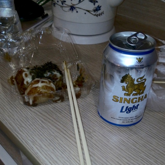 帰りがけに屋台でたこ焼きらしきものを買って夜食にしましたが、もごもごでイマイチでした。