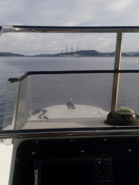 魚探を見てサバの群れを避けて、3投目でハイ釣れました。
