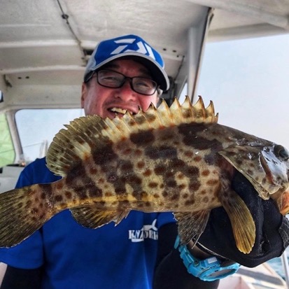 ちなみに船長、昨日は早々に「アイムハングリー」とか言って昼飯を食べていましたが、この日はなかなか釣れないので昼飯をがまん。この魚がヒットしてから、やり取り中に昼飯を食べていました(結構マジメ)