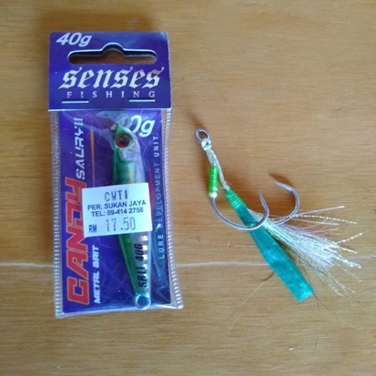 初日に船長がライトジギングでコビアを釣りました。小さなジグとバケフックを使っていて、タックルボックスの中には大量に在庫があったので、2日目スタート前に売ってもらいました。