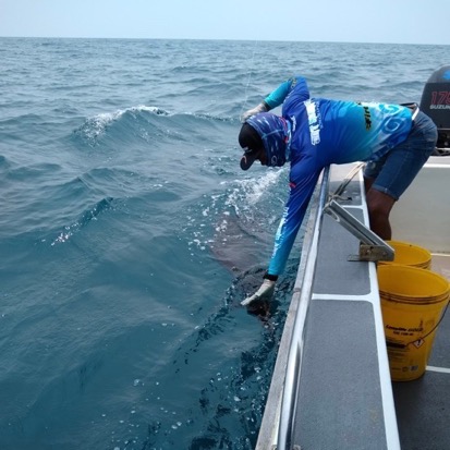 船長も助手君も魚を丁寧に扱っているのが印象的でした。居なくなったら商売が出来ませんしね。撮影時間はなるべく短く、リリース時はボートを微速前進でしばらくエラに水を通してから「サヨナラ・アリガトー」と言って離していました。