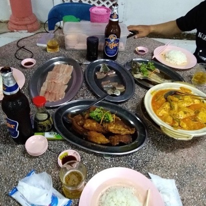 この日の夕食は、Tさんが食べたいとのことで、釣魚を中華レストランに持ち込んで交渉し調理してもらいました。
